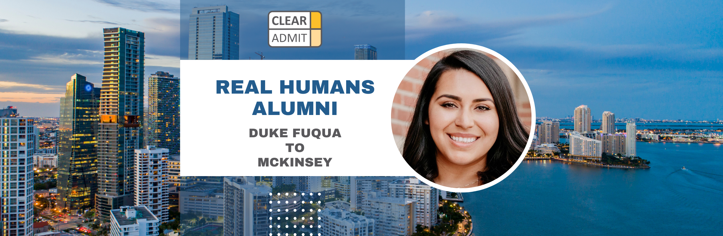 In this Real Humans: Alumni feature, Cinthia Loera, Duke Fuqua MBA ’23, walks us through how she carved a path based on social impact–with jobs in politics, higher ed and, ultimately, consulting. Her focus on community matched the one she found with “Team Fuqua” and her post-MBA choice of McKinsey bolsters her passion for social impact.