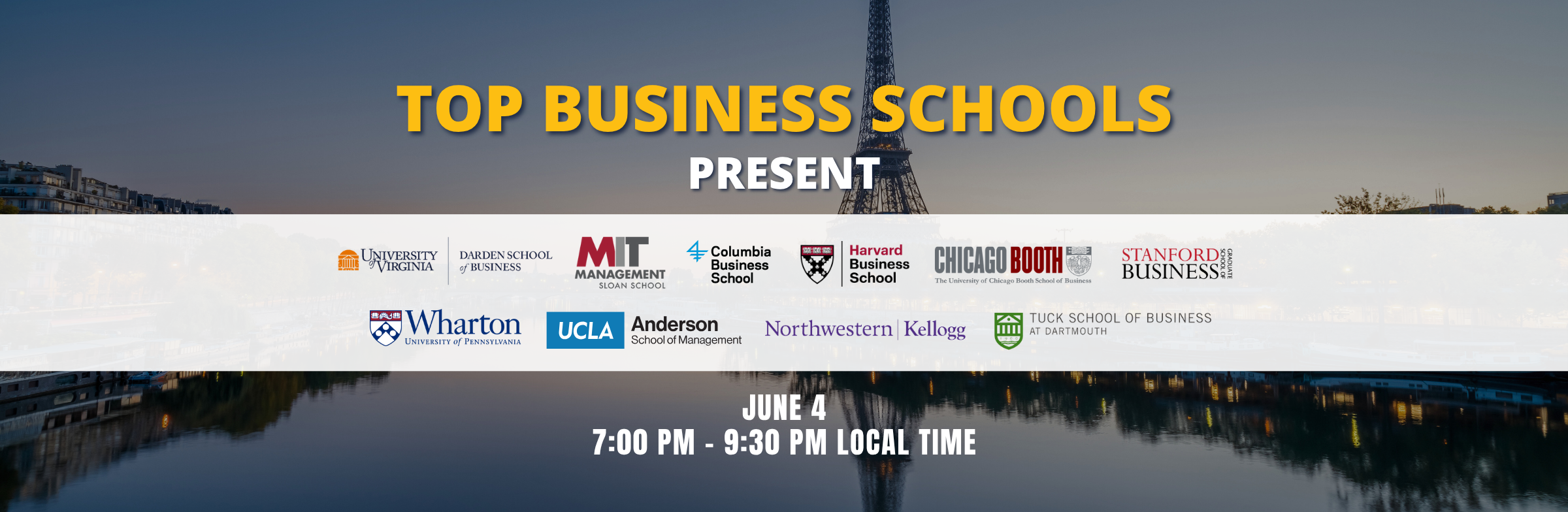 Drop everything now and head to Paris. On Wednesday, June 4th, 10 of the world’s top-ranked business schools will gather in Paris, France, to host Top Business Schools Present in Paris. Attendees can learn about their MBA programs and the student experience during and after business school, as well as network with admissions representatives.