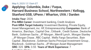 This week’s first MBA admissions candidate works in investment banking and is from Ghana. They have a 325 GRE score.