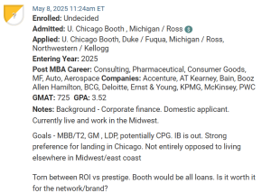 The final MBA candidate is deciding between Chicago / Booth and Michigan / Ross, with scholarship.