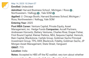 The final MBA candidate is deciding between Northwestern / Kellogg, with a significant scholarship, and Harvard. They want to work in venture capital or private equity.