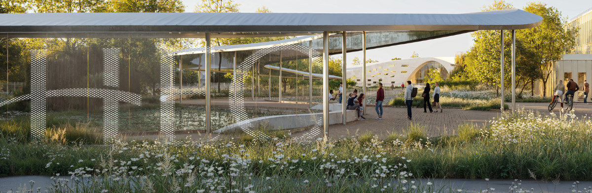 The new campus is targeting the BREEAM “Excellent” certification and France’s “Bâtiment Bas Carbone – BBCA” (Low Carbon Building) label, preserving and enhancing the natural environment through low-impact buildings and conserving biodiversity. The project includes restoring soil permeability, increasing tree canopy and gardens, and expanding walking and cycling paths.