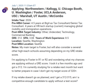 This week’s second MBA candidate has a 3.84 GPA but their GRE is only 312. We discussed the advantages and disadvantages of waiving the test.