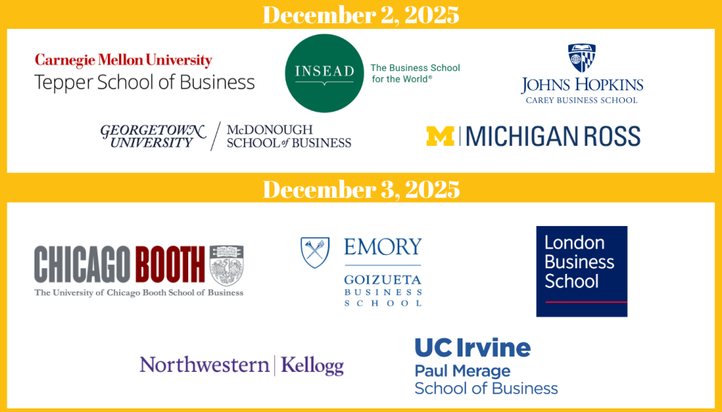 This is a rare opportunity to hear directly from nine world-class business schools in one session. Whether your goal is to study in the United States, Europe, or beyond, this event will provide the knowledge you need to make an informed decision about your next academic step.