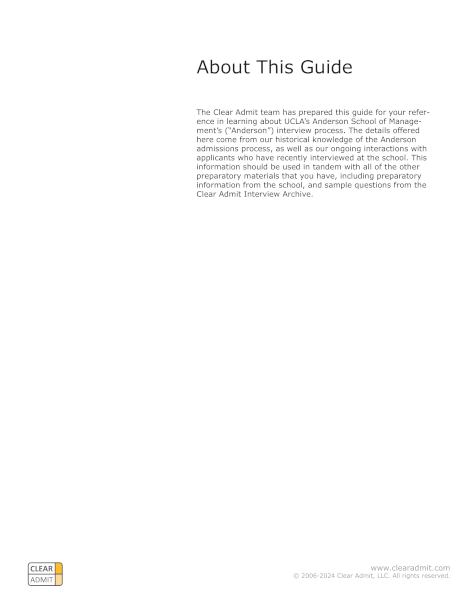 Get ready to make an impression on your UCLA MBA interviewer. Includes strategic insight and sample questions, Clear Admit’s General Interview Guide and Analysis of Common Questions.