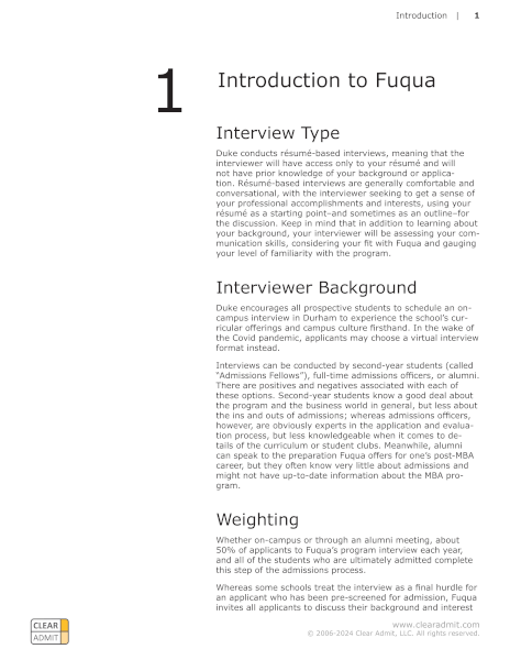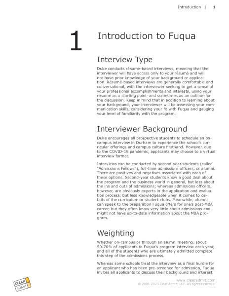 Get picked for Team Fuqua! Prepare for your Duke MBA interview with this guide’s strategic analysis, sample questions and more information. Includes Clear Admit’s General Interview Guide and Analysis of Common Questions.