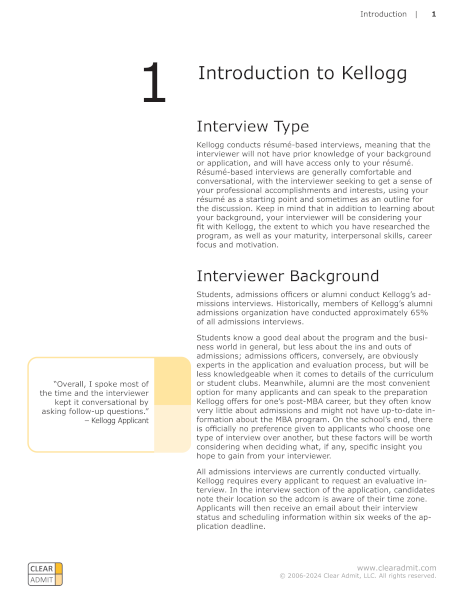 Ace your Kellogg MBA interview! Featuring firsthand accounts, frequently asked questions, school-related resources and more. Includes Clear Admit’s General Interview Guide and Analysis of Common Questions.