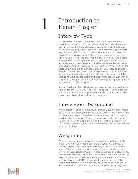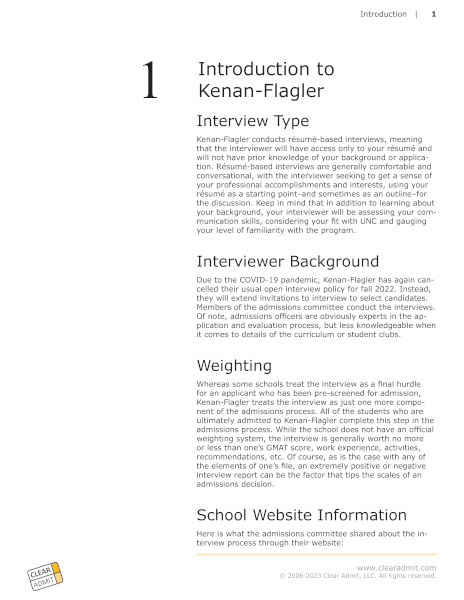 Check out the Kenan-Flagler Interview Guide! Inside you’ll find strategic tips and sample questions. Includes Clear Admit’s General Interview Guide and Analysis of Common Questions.