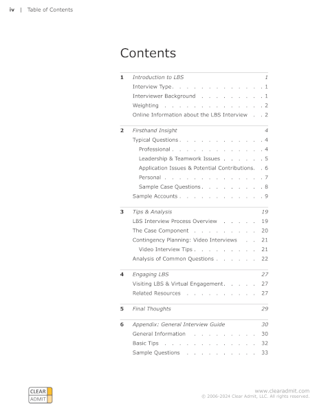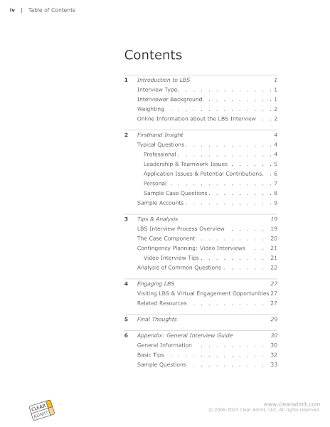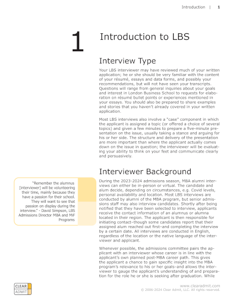 Get ready for your MBA admissions interview with LBS alumni and a case presentation with these strategic tips, sample questions and firsthand insight. Includes Clear Admit’s General Interview Guide and Analysis of Common Questions.