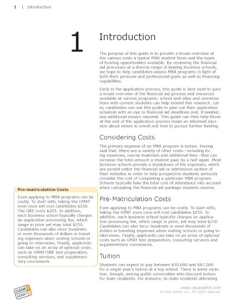Don’t start your MBA application without crunching the numbers! This informative guide will show you how to create a budget for your business degree by exploring the costs of an MBA application, the expenses of attending business school and ways to secure financing. Includes timeline for financial planning, information on merit- and need-based scholarships, and expense breakdowns for top business schools.